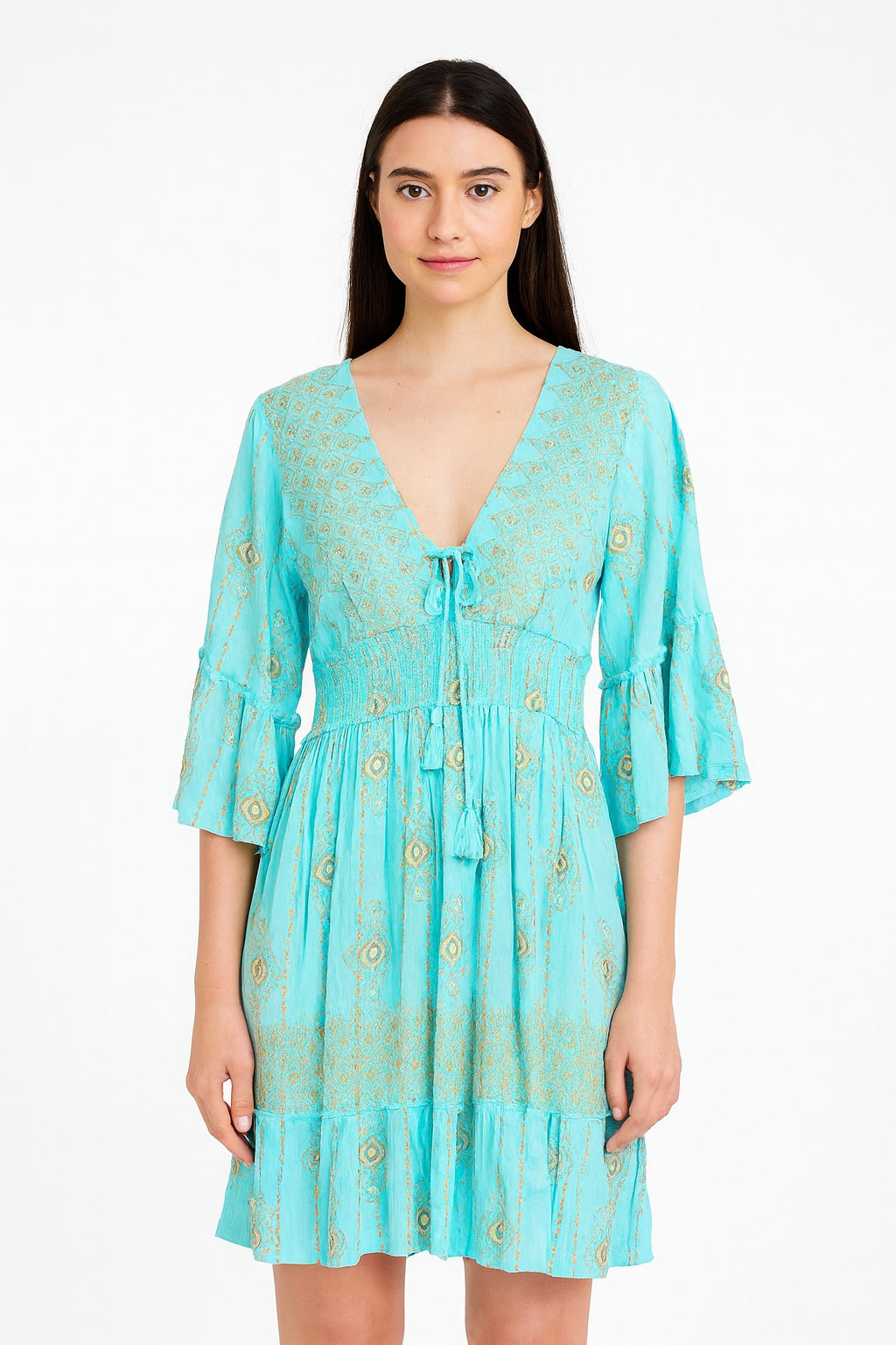 A41033-2-Lurex Short w/ Sleeve - TURQ - C-2