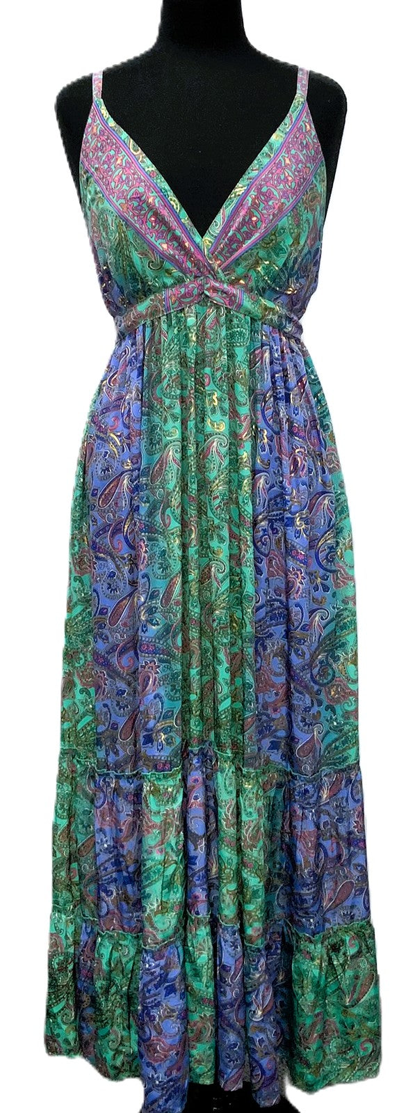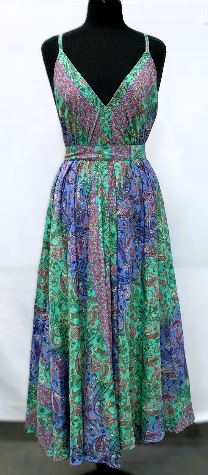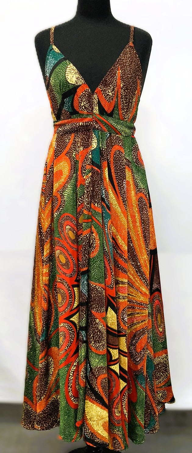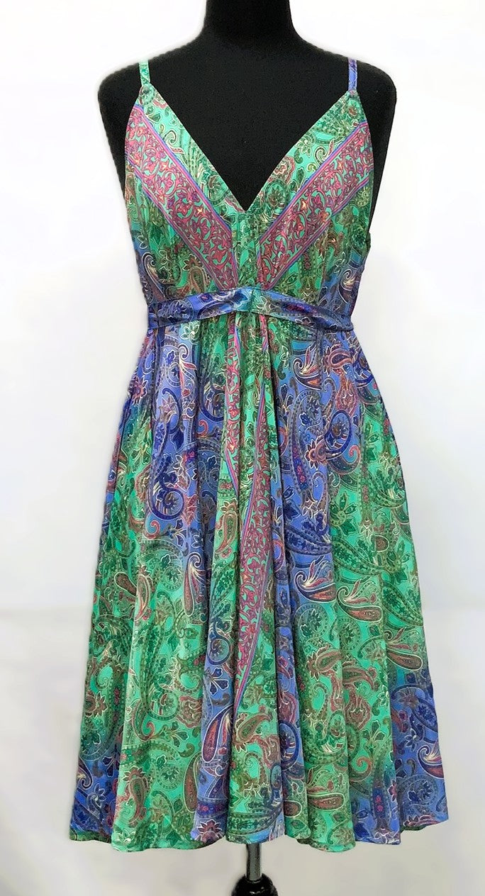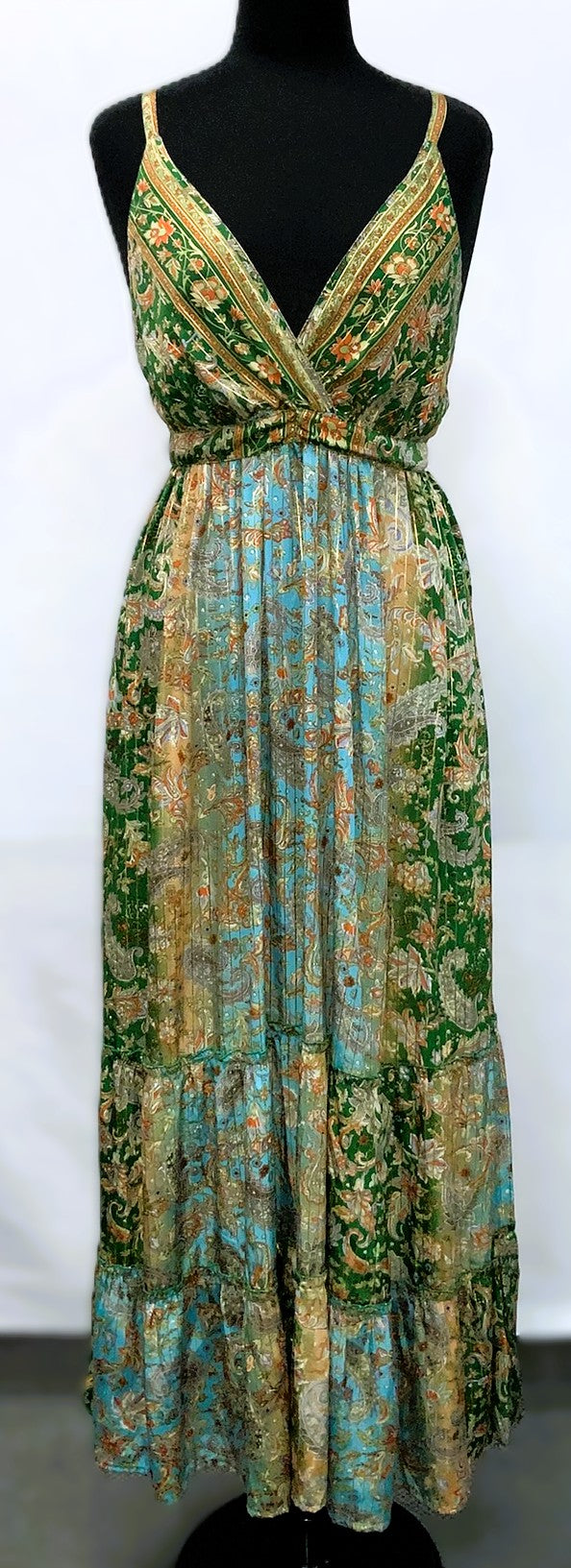 A41119-1-Satin Dress Long - Green Multi - C-2