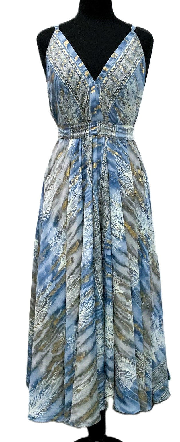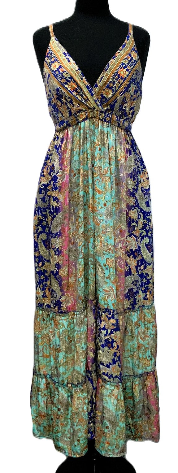 A41119-2-Satin Dress Long - Royal Multi - C-3