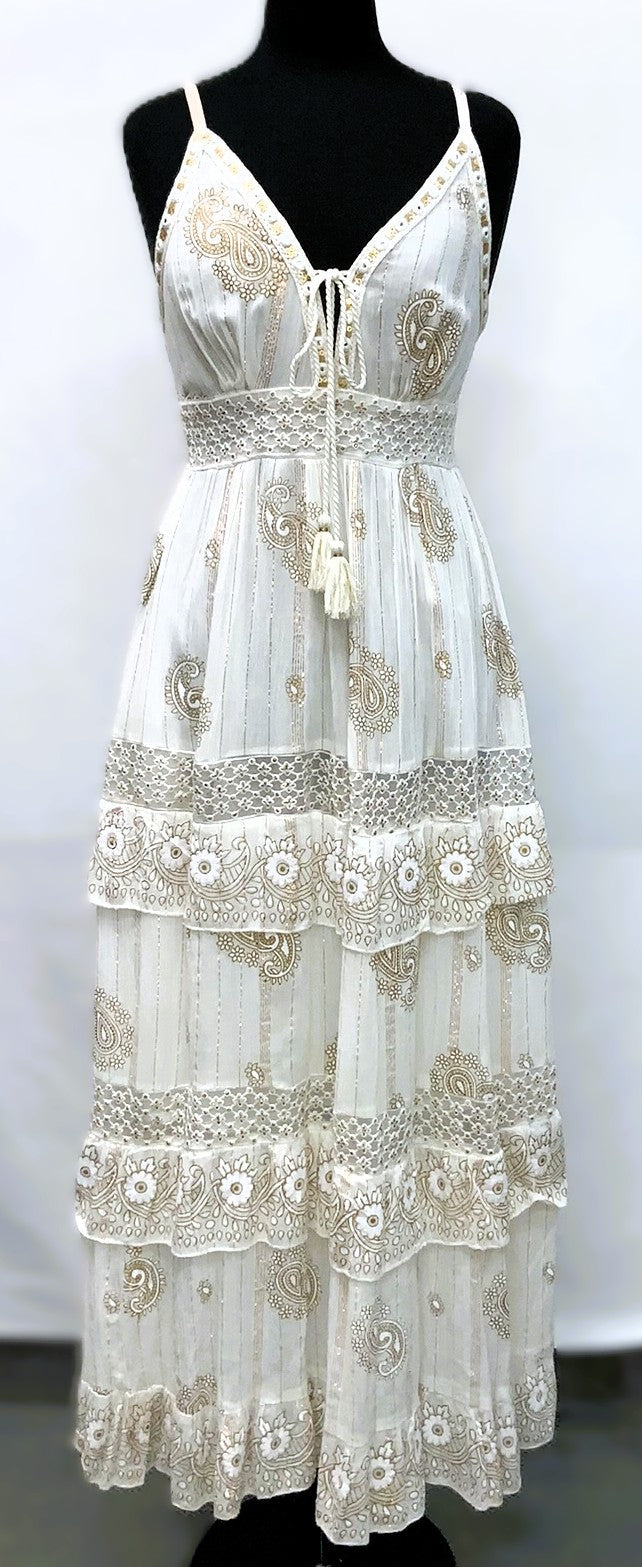 A41037-1-Lurex Long Dress w/ Cap Sleeve - WHITE - C-1