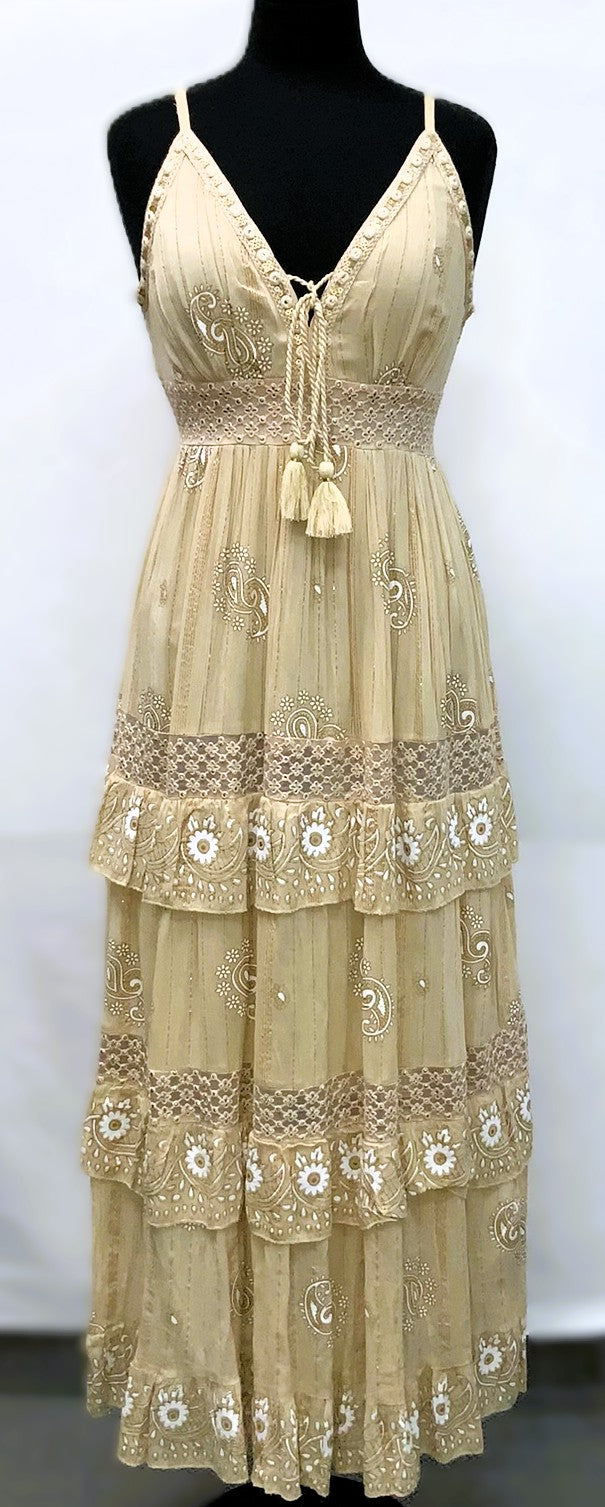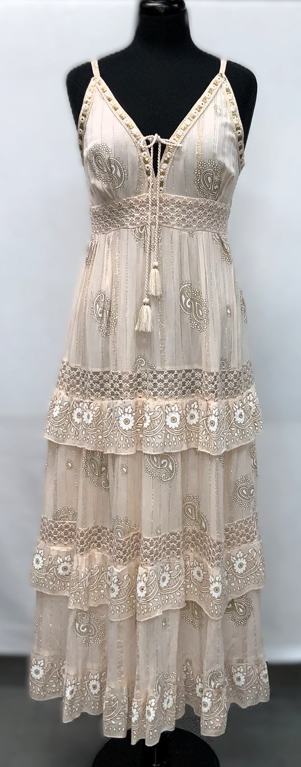 A41114-3-Lurex Long Dress w/ Sleeve - Beige Pink - C-3