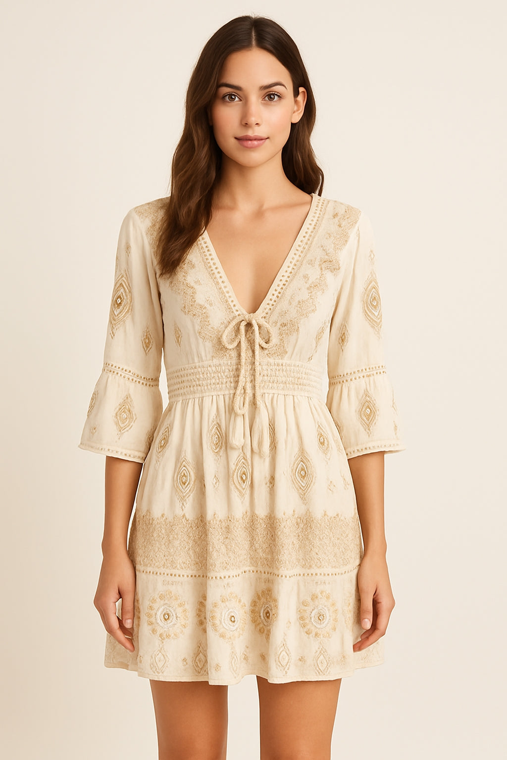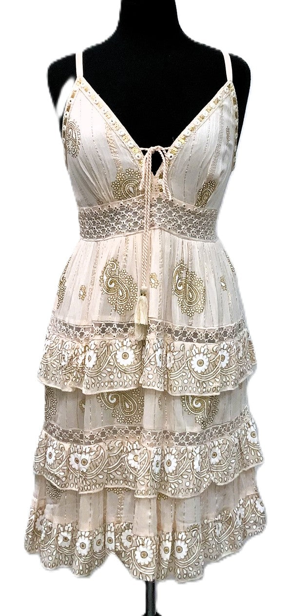 A41032-3-Lurex Short Dress - Beige - C-3