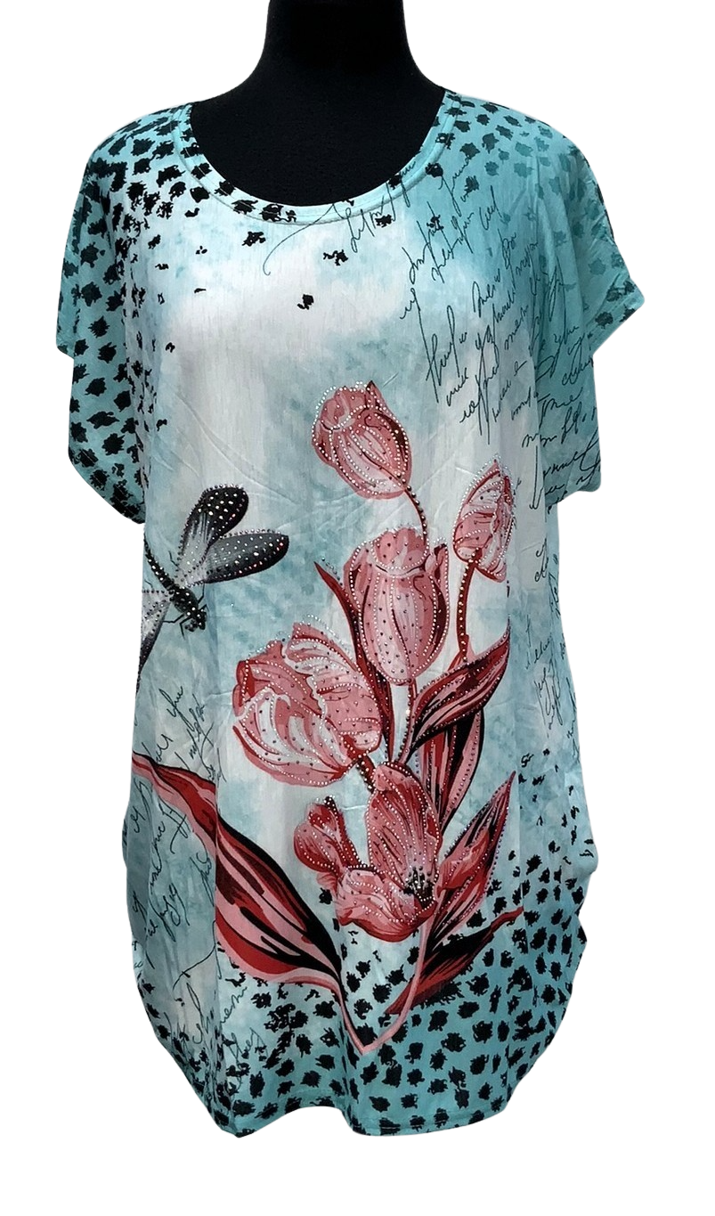E20910-2 - Fun Top Dragonfly w Flower - Teal
