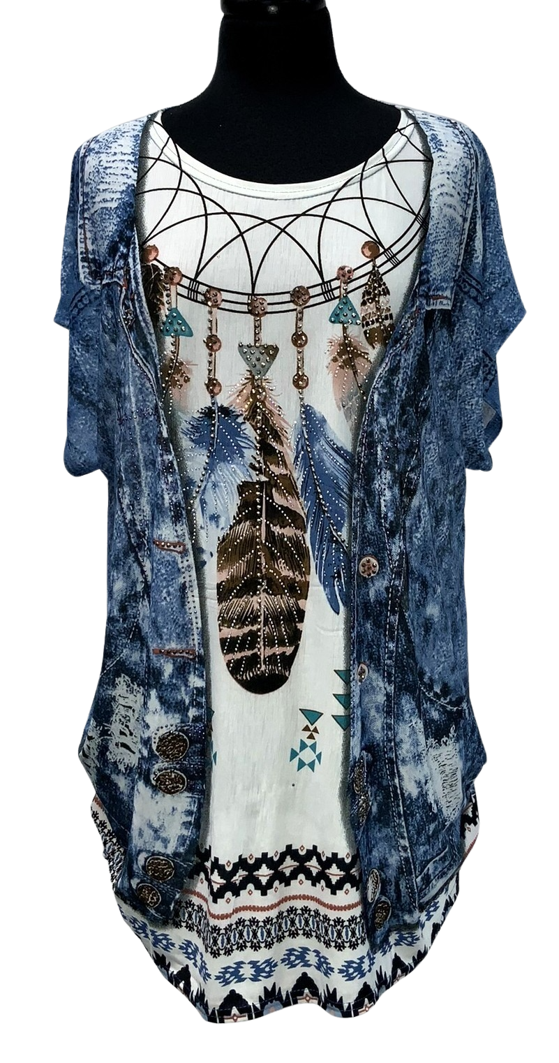 E20708-2 - Fun Top Vest W/ Feather-Denim