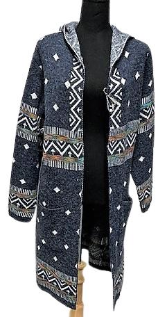 F65104V-3 - Cardigan Hooded w/Pocket - Grey