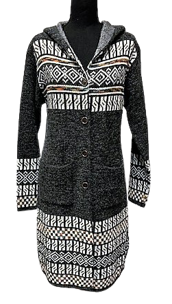 F11724 Sweater w/ Hood Short-Length - Charcoal