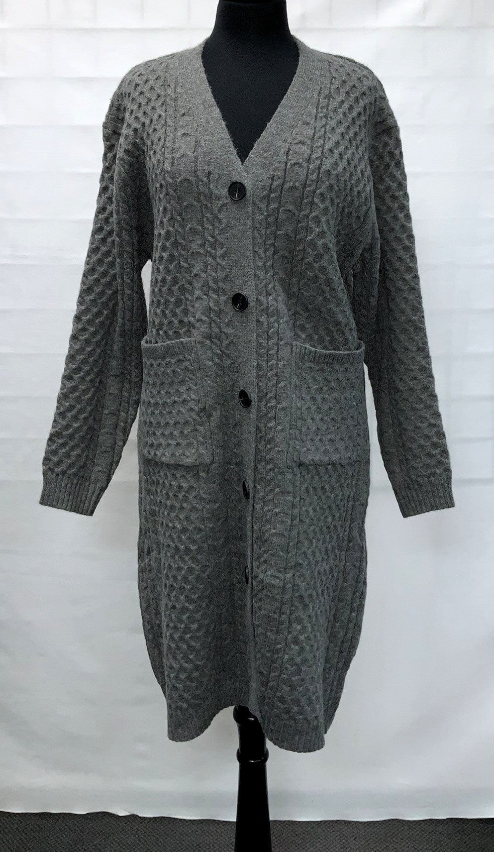 F11714-3 - Cardigan w/ Pocket - Charcoal